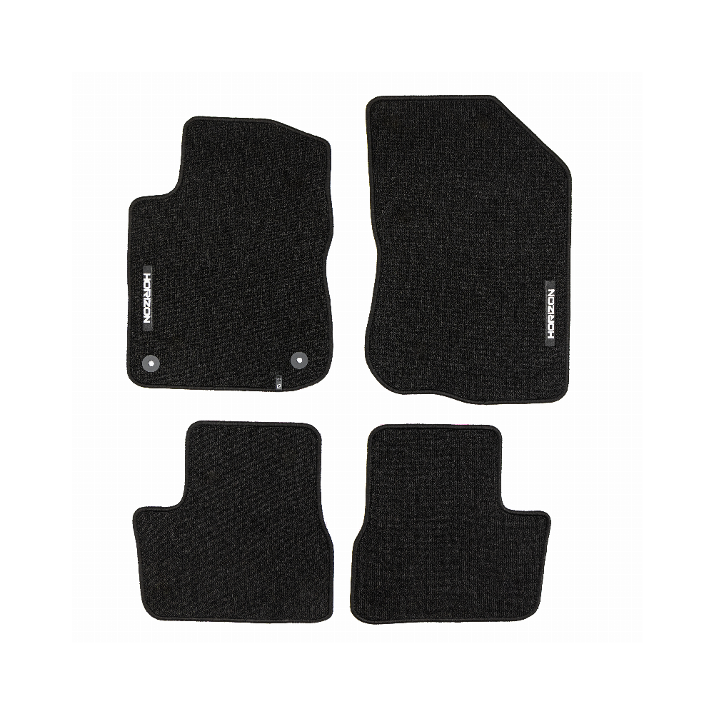 ELEGANTIŠKAS INTERJERASPremium klasės HORIZON kilimėliai išsiskiria stilinga ir modernia išvaizda, kuri puikiai paryškina automobilio salono eleganciją. Estetinis dizainas leidžia jiems sklandžiai susilieti su bet kokio tipo interjeru ir suteikti išskirtinumo.AUKŠTAS KOMFORTO LYGISDėka kilpinio kilimo konstrukcijos, bei svorio 535 g/m², HORIZON kilimėliai yra ne tik patvarūs, bet ir minkšti, ir malonūs liesti. Tai suteikia išskirtinį komfortą kiekvienos kelionės metu ir padidina kasdienio naudojimosi patogumą transporto priemone.LENGVA PRIŽIŪRĖTIHORIZON yra išskirtinai praktiškas gaminys, kurį galima greitai sumontuoti ir lengvai prižiūrėti, o tai padaro dar labiau patrauklų.ILGAAMŽIŠKUMAS IR APSAUGAHORIZON kilimėlis užtikrina ilgalaikę automobilio vidaus apsaugą, efektyviai apsaugodamas grindis nuo nešvarumų ir pažeidimų. Tvirtos konstrukcijos, pagamintas iš aukštos kokybės medžiagų, užtikrina, kad jis tarnaus ilgą laiką, išlaikant patrauklią išvaizdą.Granuliuota guminė kilimėlio apačia užtikrina puikų sukibimą ir pašalina paslydimo riziką vairuojant.Apsiuvimas polipropileno siūlu. Medžiaga – (velvet) aksomas.