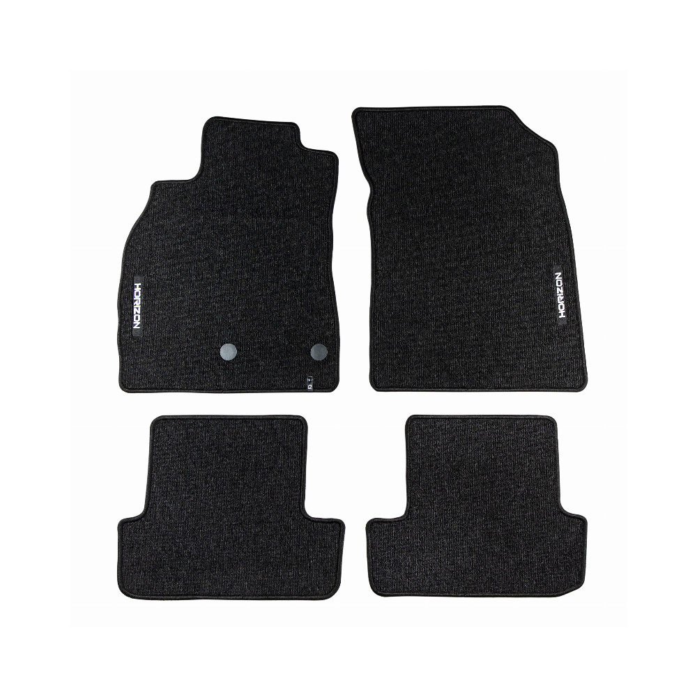 ELEGANTIŠKAS INTERJERASPremium klasės HORIZON kilimėliai išsiskiria stilinga ir modernia išvaizda, kuri puikiai paryškina automobilio salono eleganciją. Estetinis dizainas leidžia jiems sklandžiai susilieti su bet kokio tipo interjeru ir suteikti išskirtinumo.AUKŠTAS KOMFORTO LYGISDėka kilpinio kilimo konstrukcijos, bei svorio 535 g/m², HORIZON kilimėliai yra ne tik patvarūs, bet ir minkšti, ir malonūs liesti. Tai suteikia išskirtinį komfortą kiekvienos kelionės metu ir padidina kasdienio naudojimosi patogumą transporto priemone.LENGVA PRIŽIŪRĖTIHORIZON yra išskirtinai praktiškas gaminys, kurį galima greitai sumontuoti ir lengvai prižiūrėti, o tai padaro dar labiau patrauklų.ILGAAMŽIŠKUMAS IR APSAUGAHORIZON kilimėlis užtikrina ilgalaikę automobilio vidaus apsaugą, efektyviai apsaugodamas grindis nuo nešvarumų ir pažeidimų. Tvirtos konstrukcijos, pagamintas iš aukštos kokybės medžiagų, užtikrina, kad jis tarnaus ilgą laiką, išlaikant patrauklią išvaizdą.Granuliuota guminė kilimėlio apačia užtikrina puikų sukibimą ir pašalina paslydimo riziką vairuojant.Apsiuvimas polipropileno siūlu. Medžiaga – (velvet) aksomas.