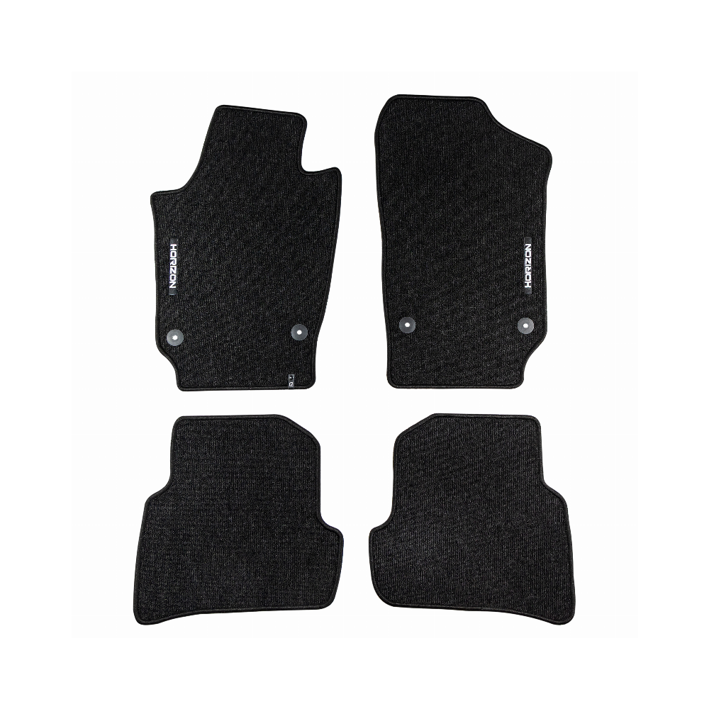 ELEGANTIŠKAS INTERJERASPremium klasės HORIZON kilimėliai išsiskiria stilinga ir modernia išvaizda, kuri puikiai paryškina automobilio salono eleganciją. Estetinis dizainas leidžia jiems sklandžiai susilieti su bet kokio tipo interjeru ir suteikti išskirtinumo.AUKŠTAS KOMFORTO LYGISDėka kilpinio kilimo konstrukcijos, bei svorio 535 g/m², HORIZON kilimėliai yra ne tik patvarūs, bet ir minkšti, ir malonūs liesti. Tai suteikia išskirtinį komfortą kiekvienos kelionės metu ir padidina kasdienio naudojimosi patogumą transporto priemone.LENGVA PRIŽIŪRĖTIHORIZON yra išskirtinai praktiškas gaminys, kurį galima greitai sumontuoti ir lengvai prižiūrėti, o tai padaro dar labiau patrauklų.ILGAAMŽIŠKUMAS IR APSAUGAHORIZON kilimėlis užtikrina ilgalaikę automobilio vidaus apsaugą, efektyviai apsaugodamas grindis nuo nešvarumų ir pažeidimų. Tvirtos konstrukcijos, pagamintas iš aukštos kokybės medžiagų, užtikrina, kad jis tarnaus ilgą laiką, išlaikant patrauklią išvaizdą.Granuliuota guminė kilimėlio apačia užtikrina puikų sukibimą ir pašalina paslydimo riziką vairuojant.Apsiuvimas polipropileno siūlu. Medžiaga – (velvet) aksomas.
