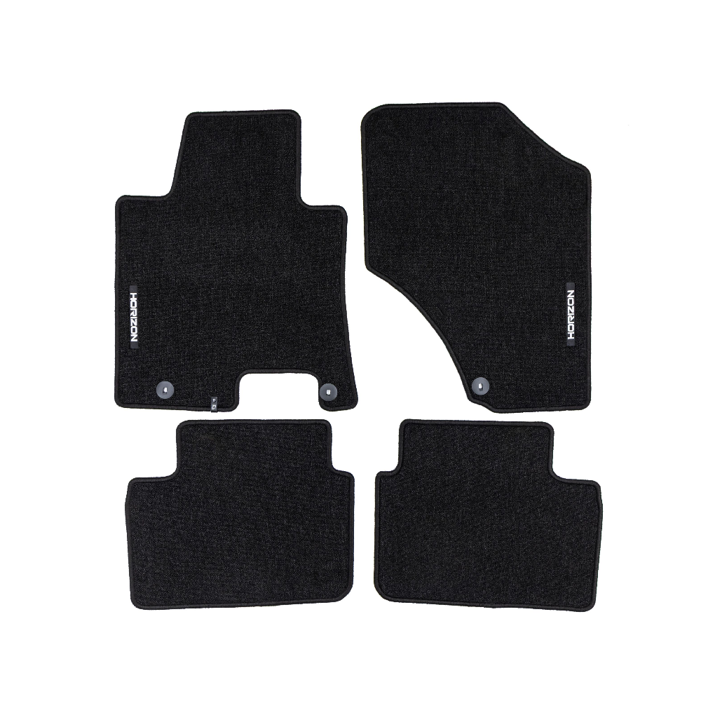 ELEGANTIŠKAS INTERJERASPremium klasės HORIZON kilimėliai išsiskiria stilinga ir modernia išvaizda, kuri puikiai paryškina automobilio salono eleganciją. Estetinis dizainas leidžia jiems sklandžiai susilieti su bet kokio tipo interjeru ir suteikti išskirtinumo.AUKŠTAS KOMFORTO LYGISDėka kilpinio kilimo konstrukcijos, bei svorio 535 g/m², HORIZON kilimėliai yra ne tik patvarūs, bet ir minkšti, ir malonūs liesti. Tai suteikia išskirtinį komfortą kiekvienos kelionės metu ir padidina kasdienio naudojimosi patogumą transporto priemone.LENGVA PRIŽIŪRĖTIHORIZON yra išskirtinai praktiškas gaminys, kurį galima greitai sumontuoti ir lengvai prižiūrėti, o tai padaro dar labiau patrauklų.ILGAAMŽIŠKUMAS IR APSAUGAHORIZON kilimėlis užtikrina ilgalaikę automobilio vidaus apsaugą, efektyviai apsaugodamas grindis nuo nešvarumų ir pažeidimų. Tvirtos konstrukcijos, pagamintas iš aukštos kokybės medžiagų, užtikrina, kad jis tarnaus ilgą laiką, išlaikant patrauklią išvaizdą.Granuliuota guminė kilimėlio apačia užtikrina puikų sukibimą ir pašalina paslydimo riziką vairuojant.Apsiuvimas polipropileno siūlu. Medžiaga – (velvet) aksomas.