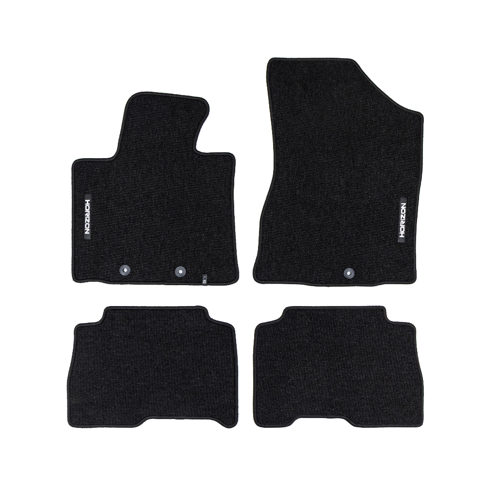 ELEGANTIŠKAS INTERJERASPremium klasės HORIZON kilimėliai išsiskiria stilinga ir modernia išvaizda, kuri puikiai paryškina automobilio salono eleganciją. Estetinis dizainas leidžia jiems sklandžiai susilieti su bet kokio tipo interjeru ir suteikti išskirtinumo.AUKŠTAS KOMFORTO LYGISDėka kilpinio kilimo konstrukcijos, bei svorio 535 g/m², HORIZON kilimėliai yra ne tik patvarūs, bet ir minkšti, ir malonūs liesti. Tai suteikia išskirtinį komfortą kiekvienos kelionės metu ir padidina kasdienio naudojimosi patogumą transporto priemone.LENGVA PRIŽIŪRĖTIHORIZON yra išskirtinai praktiškas gaminys, kurį galima greitai sumontuoti ir lengvai prižiūrėti, o tai padaro dar labiau patrauklų.ILGAAMŽIŠKUMAS IR APSAUGAHORIZON kilimėlis užtikrina ilgalaikę automobilio vidaus apsaugą, efektyviai apsaugodamas grindis nuo nešvarumų ir pažeidimų. Tvirtos konstrukcijos, pagamintas iš aukštos kokybės medžiagų, užtikrina, kad jis tarnaus ilgą laiką, išlaikant patrauklią išvaizdą.Granuliuota guminė kilimėlio apačia užtikrina puikų sukibimą ir pašalina paslydimo riziką vairuojant.Apsiuvimas polipropileno siūlu. Medžiaga – (velvet) aksomas.