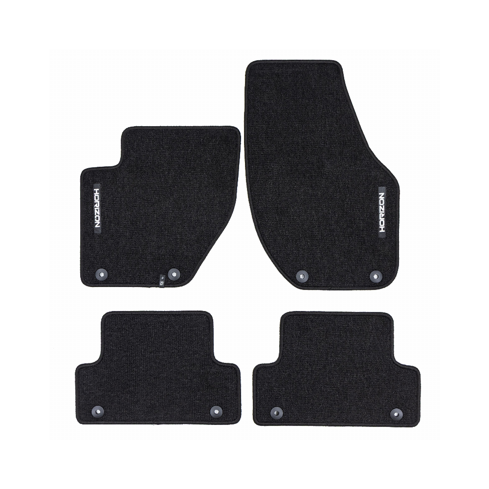ELEGANTIŠKAS INTERJERASPremium klasės HORIZON kilimėliai išsiskiria stilinga ir modernia išvaizda, kuri puikiai paryškina automobilio salono eleganciją. Estetinis dizainas leidžia jiems sklandžiai susilieti su bet kokio tipo interjeru ir suteikti išskirtinumo.AUKŠTAS KOMFORTO LYGISDėka kilpinio kilimo konstrukcijos, bei svorio 535 g/m², HORIZON kilimėliai yra ne tik patvarūs, bet ir minkšti, ir malonūs liesti. Tai suteikia išskirtinį komfortą kiekvienos kelionės metu ir padidina kasdienio naudojimosi patogumą transporto priemone.LENGVA PRIŽIŪRĖTIHORIZON yra išskirtinai praktiškas gaminys, kurį galima greitai sumontuoti ir lengvai prižiūrėti, o tai padaro dar labiau patrauklų.ILGAAMŽIŠKUMAS IR APSAUGAHORIZON kilimėlis užtikrina ilgalaikę automobilio vidaus apsaugą, efektyviai apsaugodamas grindis nuo nešvarumų ir pažeidimų. Tvirtos konstrukcijos, pagamintas iš aukštos kokybės medžiagų, užtikrina, kad jis tarnaus ilgą laiką, išlaikant patrauklią išvaizdą.Granuliuota guminė kilimėlio apačia užtikrina puikų sukibimą ir pašalina paslydimo riziką vairuojant.Apsiuvimas polipropileno siūlu. Medžiaga – (velvet) aksomas.