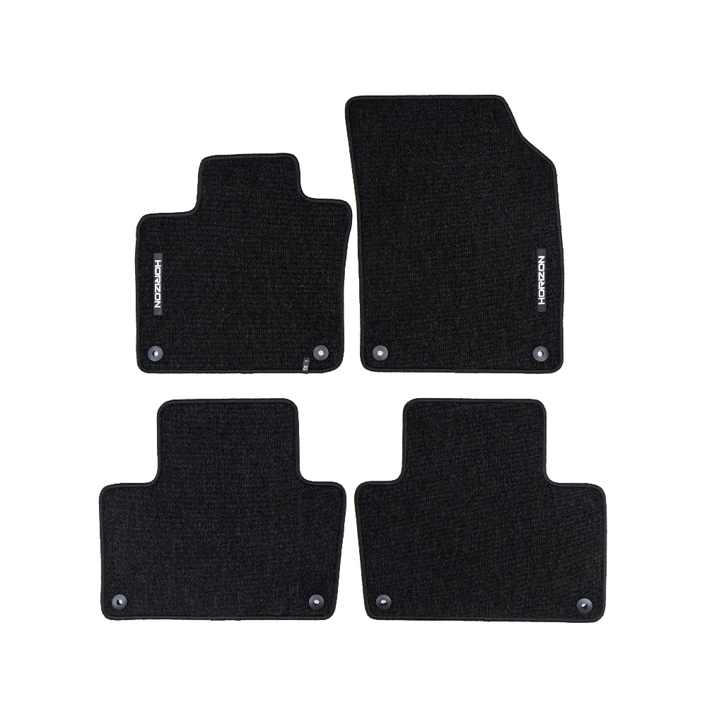ELEGANTIŠKAS INTERJERAS Premium klasės HORIZON kilimėliai išsiskiria stilinga ir modernia išvaizda, kuri puikiai paryškina automobilio salono eleganciją. Estetinis dizainas leidžia jiems sklandžiai susilieti su bet kokio tipo interjeru ir suteikti išskirtinumo.AUKŠTAS KOMFORTO LYGISDėka kilpinio kilimo konstrukcijos, bei svorio 535 g/m², HORIZON kilimėliai yra ne tik patvarūs, bet ir minkšti, ir malonūs liesti. Tai suteikia išskirtinį komfortą kiekvienos kelionės metu ir padidina kasdienio naudojimosi patogumą transporto priemone.LENGVA PRIŽIŪRĖTIHORIZON yra išskirtinai praktiškas gaminys, kurį galima greitai sumontuoti ir lengvai prižiūrėti, o tai padaro dar labiau patrauklų.ILGAAMŽIŠKUMAS IR APSAUGAHORIZON kilimėlis užtikrina ilgalaikę automobilio vidaus apsaugą, efektyviai apsaugodamas grindis nuo nešvarumų ir pažeidimų. Tvirtos konstrukcijos, pagamintas iš aukštos kokybės medžiagų, užtikrina, kad jis tarnaus ilgą laiką, išlaikant patrauklią išvaizdą.Granuliuota guminė kilimėlio apačia užtikrina puikų sukibimą ir pašalina paslydimo riziką vairuojant.Apsiuvimas polipropileno siūlu. Medžiaga – (velvet) aksomas.