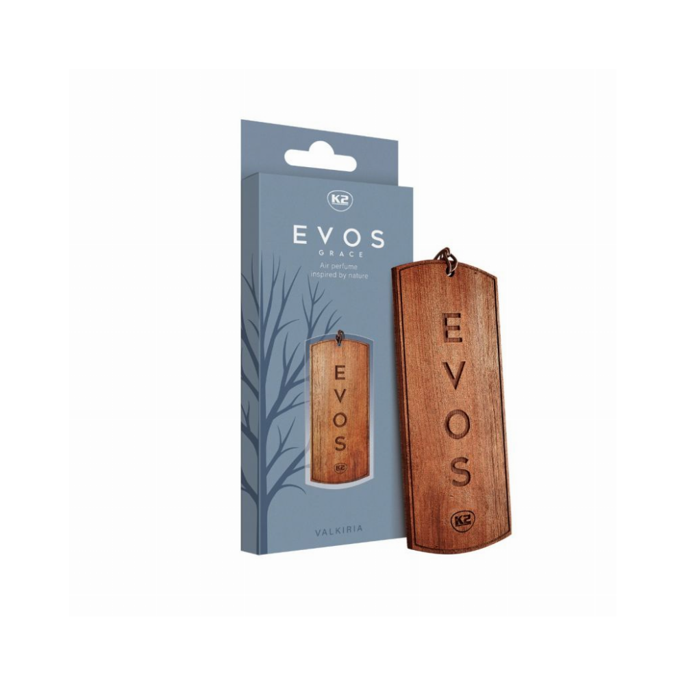 Daina pasakoja, kad pirmasis EVOS Grace pakabukas buvo sukurtas iš pasaulio medžio Yggdrasil šakos, po kuria gyvena likimo deivės.Ar eisite jų jums nupintu keliu, ar pasirinksite savo? Eikite per gyvenimą savo keliu. Eik per gyvenimą su malone. Važiuokite su EVOS Grace.K2 EVOS Grace yra nepaprastas automobilio oro gaiviklis medinio pakabuko pavidalu, įkvėptas gamtos ir pripildytas žavesio. Pagaminta iš medžio masyvo su dvipusiu graviravimu, puošia automobilio interjerą kaip kvepiantys papuošalai. EVOS Angel yra įkvėpimas ir mūza, kurios buvimas džiugina ir motyvuoja kitus. Tai aromatas, nukeliantis į dangišką lengvumo ir svajonių pasaulį, priversdamas jaustis tarsi sklandytum ore.Šios unikalios kompozicijos esmė – subtili frezija, suteikianti gaivumo ir lengvumo, simbolizuojanti dangišką žavesį ir subtilumą. Tada jį papildo sultinga slyva, kuri suteikia vaisinį akcentą, suteikia kvapui gylio ir jausmingumo. Visumą papildo saldžios praline, kurios įveda šiltą, apgaubiantį akcentą, primenantį saldumą ir harmoniją. Šis gėlių ir vaisių kvapas yra įkvėpimo ir lengvumo esmė, kuri aplink jus sukuria svajonių ir džiaugsmo aurą. Puikiai tinka bet kuriai akimirkai, kai norisi pasijusti mūza, plaukiančia vaizduotės ir įkvėpimo sparnais. Pajuskite dangiško kvapo magiją, kuri kiekvienai akimirkai suteikia lengvumo ir leidžia jaustis nepakartojamai.Tai kvapas, kuris įkvepia, apgaubia jus subtilumu ir saldumu, kiekvieną kelionę paversdamas dangišku nuotykiu, kupinu svajonių ir ekstazių.Kvapo natos: frezija, slyva, praline Kvapų šeima: gėlių-vaisių