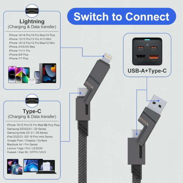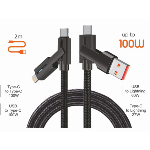 GREITO ĮKROVIMO LAIDAS USB/TYPE-C SU TYPE-C/LIGHTINING 2M