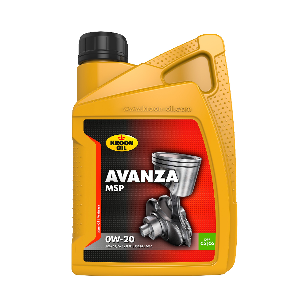 AVANZA MSP 0W-20 Kroon oil Avanza MSP 0W-20 yra degalus taupanti sintetinė variklinė alyva, sukurta pagal naujausias Mid-SAPS technologijas, skirta naudoti naujos kartos automobiliuose su šiuolaikinėmis technologijomis, tokiomis kaip kietųjų dalelių filtrai, kataliziniai konverteriai, start/stop sistemos, šlapio diržo (B-I-O technologija) ir hibridinėms sistemoms . Panaudota aukčiausios kokybės bazinė alyva, papildyta pažangiausiais priedais, kad būtų pasiektos šios savybės: • Degalų taupymas • Sumažėjęs degimo likučių susidarymas dėl mažesnio „SAPS“ kiekio • Pailgintas kietųjų dalelių filtrų ir katalizinių konverterių tarnavimo laikas • Sklandus šaltas startas • Apsauginė tepalo plėvelė esant aukštai darbinei temperatūrai • Pailginti alyvos keitimo intervalai • Puiki dispersija ir plovimas • Labai didelis atsparumas dilimui, korozijai ir putojimui Taikymas: Kroon oil Avanza MSP 0W-20 yra specialiai sukurta naudoti naujausios kartos „PSA“ varikliuose (Peugeot/Citroën/ Ford), kur reikalinga PSA B71 2010 specifikacija. Daugiausia apima modelius su „Blue HDI“, „PureTech“ ir hibridinius variklius (DV5R ir EB2DT), su „Stop/Start“ technologijomis arba be jų, kuriems reikalinga naujos kartos degalus taupančios sintetinės variklinės alyvos. Taip pat tinka kitiems Stellantis grupės automobiliams, kuriems galioja toliau išvardytos Opel arba Fiat specifikacijos. Produkto specifikacijos: ACEA C5, C6 API SP PSA B71 2010 m