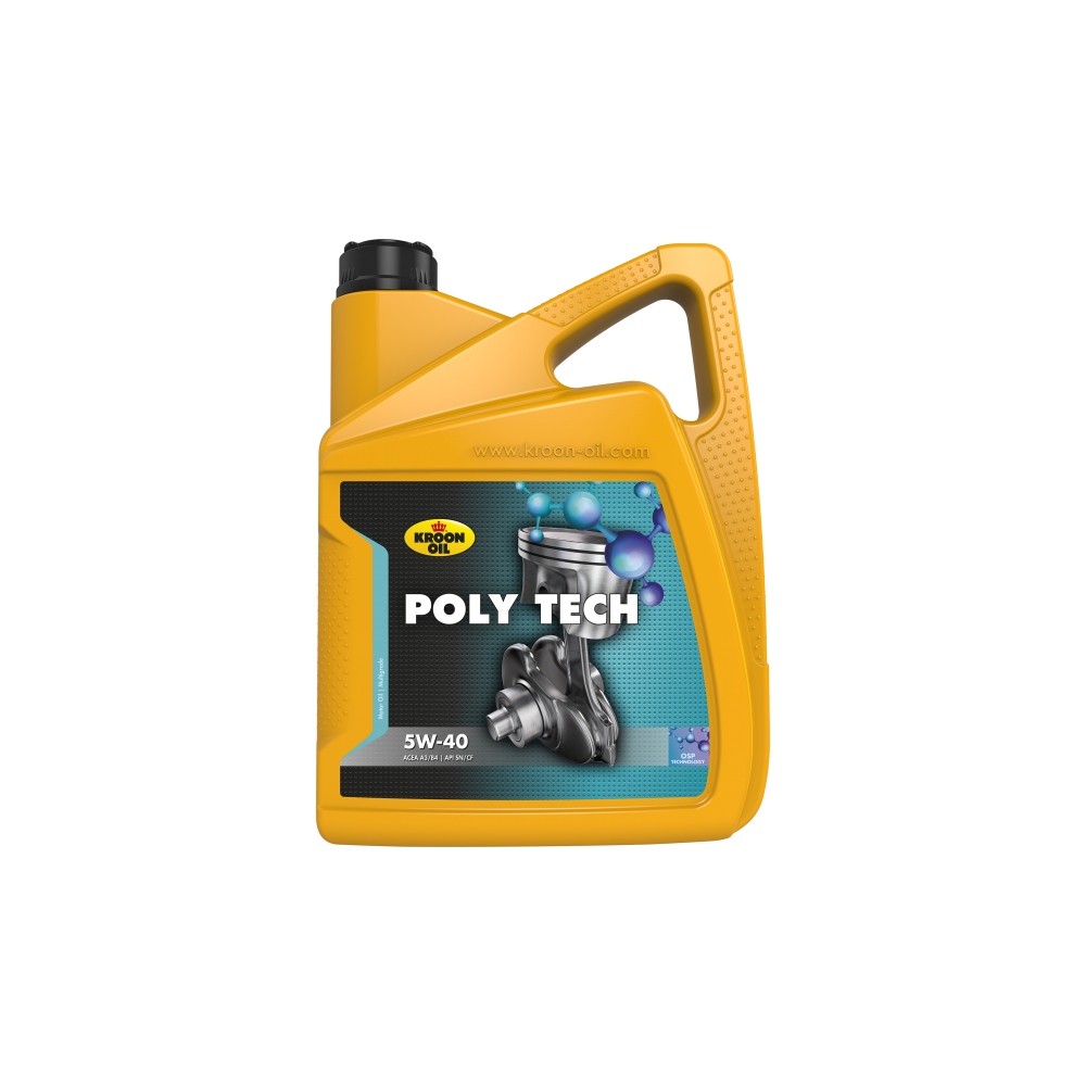 KR36139 KR36140 KROONOIL Poly Tech yra labai aukštos kokybės variklinė alyva, specialiai sukurta užtikrinti dar geresnę variklio komponentų apsaugą, veikiančių itin ekstremaliomis sąlygomis. Šis produktas pagamintas iš labai aukštos kokybės bazinės alyvos papildytos unikaliais OSP priedais, išskiriančia alyvą iš kitų. Tinkama naudoti tiek benzininiuose, tiek dyzeliniuose lengvųjų automobilių ir furgonų varikliuose. Dėl alyvą papildytų OSP priedų, KROONOIL Poly Tech 5W-40 yra labai tinkama naudoti tokiomis ekstremaliomis sąlygomis kaip : sportiškas vairavimo būdas, vairavimas intensyviame eisme, variklio užvedimas itin žemoje temperatūroje ir pan. Savybės: • Pasižymi didele variklio plovimo galia • Puikiu šlyties stabilumu • Idealiu šaltu variklio startu, variklio apsauga esant itin žemai temperatūrai • Itin aukšta variklio devėjimosi apsauga • Padidintu oksidacijos atsparumu • Idealia korozijos apsauga • Mažesne judančių variklių dalių trintimi • Mažesniu alyvos suvartojimu Taikymas: „Poly Tech 5W-40“ Tinkama naudoti tiek benzininiuose, tiek dyzeliniuose lengvųjų automobilių ir furgonų varikliuose.. Naudojant unikalius „OSP“ priedus, „Poly Tech 5W-40“ idealiai tinka naudoti transporto priemonėse, veikiančiose ekstremaliomis sąlygomis. Tokiomis kaip:, „sportišku“ važiavimu, važiavimas intensyviu automobiliu eismu ar variklio užvedimu žemoje temperatūroje.Atitinka specifikacijas: ACEA A3/B4 API SN/CF BMW Longlife-01 GM LL-B-025 MB 229.3/226.5 Porsche A40 Renault RN0700/RN0710 VW 502.00/505.00