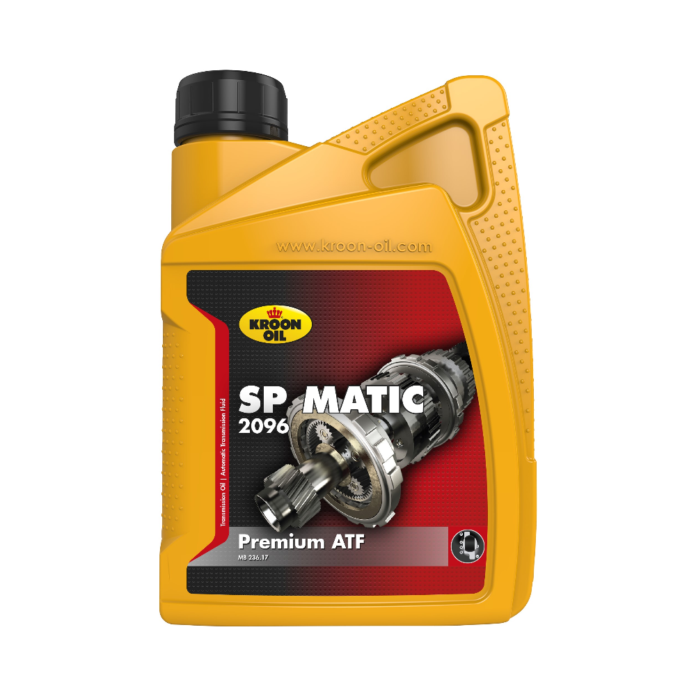 Kroon oil „SP Matic 2096“ yra aukščiausios kokybės, itin mažo klampumo „Long-Life“ ATF, specialiai sukurtas naujausios kartos degalus taupančioms automatinėms pavarų dėžėms. Specialiai atrinkta aukščiausios kokybės bazinė alyva, papildyta naujausios kartos priedais. Kroon Oil „SP Matic 2096“ pasižymi šiomis savybėmis: • Išskirtinėmis degalų taupymo savybėmis. • Itin dideliu atsparumu oksidacijai. • Puikiomis ir labai stabiliomis trinties charakteristikomis. • ilgais alyvos keitimo intervalais. • Išskirtinėmis tepimo savybėmis. • Puikia apsauga nuo korozijos ir putojimo. • Puikiomis žemos temperatūros savybėmis. • Visiškai suderinta su Mercedes naudojamomis sandarinimo medžiagomis. Taikymas: SP Matic 2096 yra labai aukštos kokybės, sintetinė ATF transmisinė alyva, specialiai sukurta naujausios kartos automatinėms pavarų dėžėms, daug dėmesio skiriant degalų taupymui. Tokioms modernioms degalus taupančioms transmisijoms automobilių gamintojai vis dažniau rekomenduoja itin mažo klampumo naujos kartos ATF alyvą, kuri ženkliai prisideda prie mažesnių degalų sąnaudų. Produkto specifikacijos: Aisin Warner AW-2 BMW 83 22 2 413 477 (ATF7) Ford Mercon ULV Ford M2C949-A GM Dexron ULV ATF MB 236.17 VW G053 001