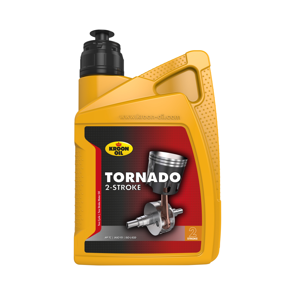 Tornado yra 100 proc. sintetinė 2-taktčiams (benzino) varikliams alyva. Ši alyva specialiai sukurta 2-takčiams varikliams papildytų pažangiais priedais kad pasiektų sekančių savybių: - puikus tepimas visų variklio dalių dėka veiksmingo sukibimo: puiki apsauga nuo susidėvėjimo, prailgina variklio tarnavimo laiką, - aukšto lygio apsaugą nuo korozijos, - mažai dūmina ir silpnai jaučiamas kvapas, - beveik visiškai sudega, žvakės lieka švarios, užtikrinant optimalų variklio veikimą.; - galima maišyti su bešviniu benzinu. Tornado yra greitiems, galingiems oru aušinamiems 2-taktčiams varikliams mopedų, motociklų, motorolerių, grandininių pjūklų, žoliapjovų, generatorių ir t.t. Tornado tinkamas ir 2-takčiams varikliams vandeniu (su radiatoriais) aušinamiems varikliams. Savarankiško maišymo santykis rekomenduojamas: 1 dalis alyvos ir 50 dalių benzino, arba naudoti maišymo santykį rekomenduojamą gamintojo. Tornado yra pilnai sintetinė savarankiško maišymo variklinė alyva, kuria galima naudoti ir automatinėms tepimo sistemoms. PRODUKTO SPECIFIKACIJOS: API TC JASO FD ISO-L-EGD Husqvarna Piaggio Hexagon