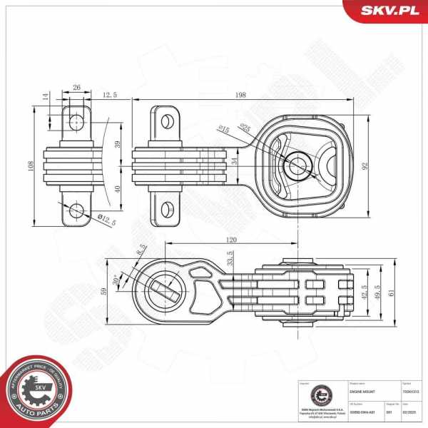 montavimo vieta: apatinis, ilgis [mm]: 198, plotis [mm]: 108, aukštis [mm]: 61, medžiaga: aliuminis, medžiaga: plienas, elastomeras, vidinis skersmuo [mm]: 15, montavimo tipas: Guminis metalinis guolis, garantija: 3 metų garantija, Būtina palyginti senąją ir naująją dalis (visų pirma OE Nr.):