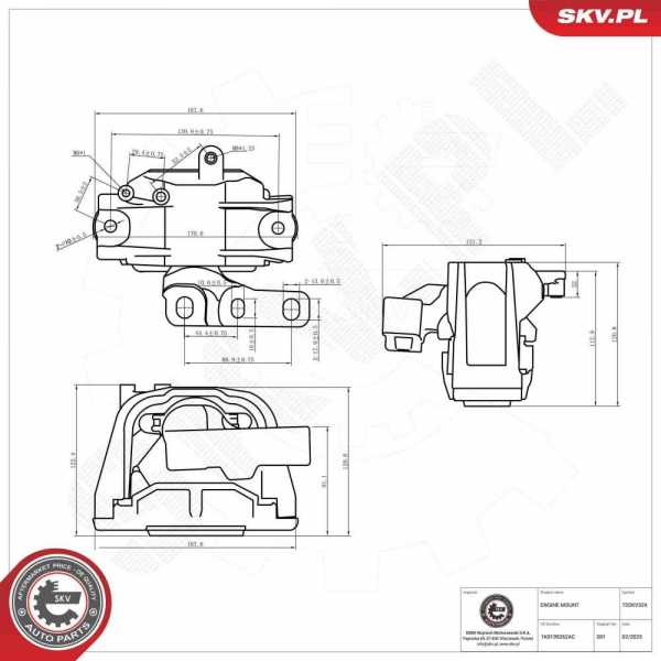 montavimo vieta: dešinė, ilgis [mm]: 168, plotis [mm]: 151, aukštis [mm]: 122, medžiaga: aliuminis, medžiaga: plienas, elastomeras, montavimo tipas: Guminis metalinis guolis, garantija: 3 metų garantija, Būtina palyginti senąją ir naująją dalis (visų pirma OE Nr.):